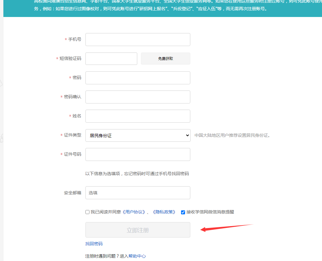 第三步:点击“注册学信网账号”(已注册过的学生直接转到第五步)